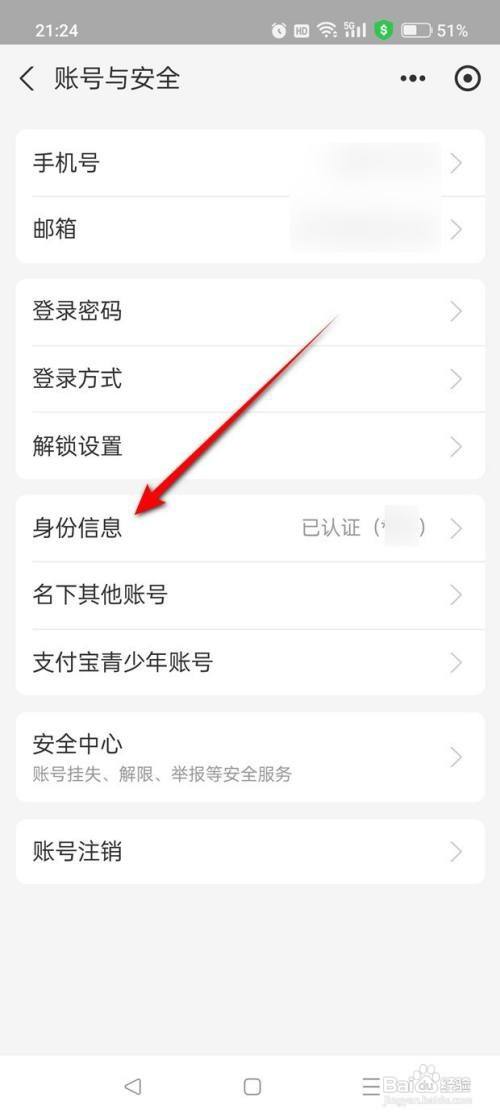点击“身份信息”。