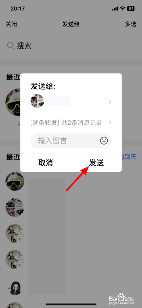 在发送给界面,点击摰友。