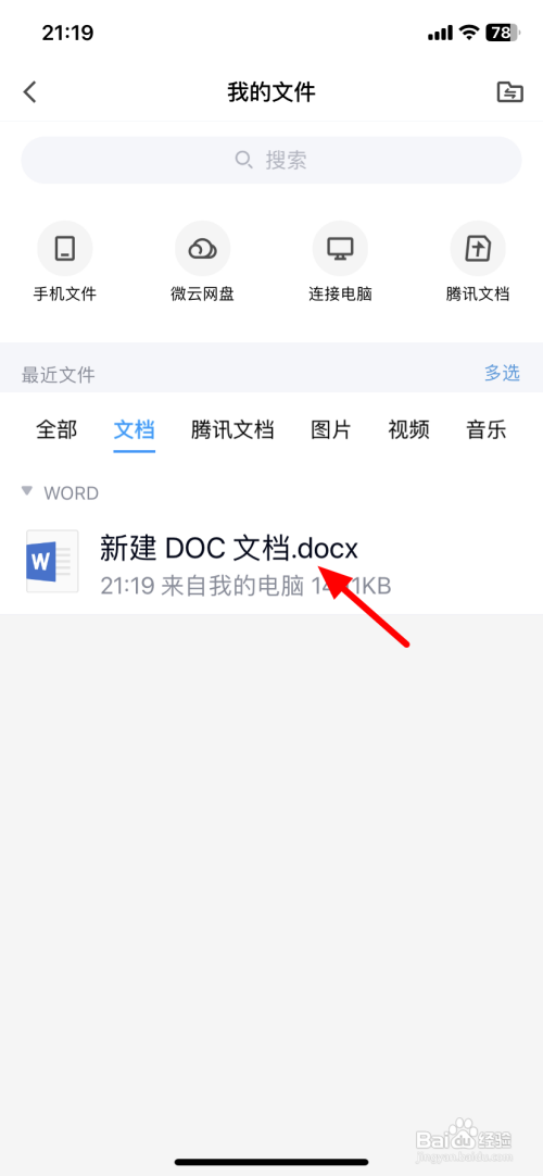 在我的文件界面,单击文件。