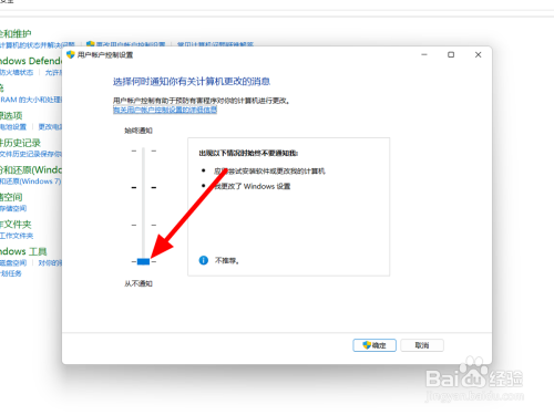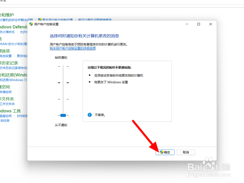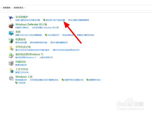 在安全和维护选项下,点击【更改用户帐户节制设置】。
