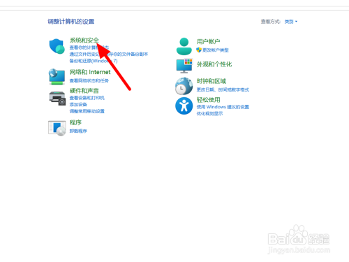 在节制面板的种别选项下,点击【体系和安全】。