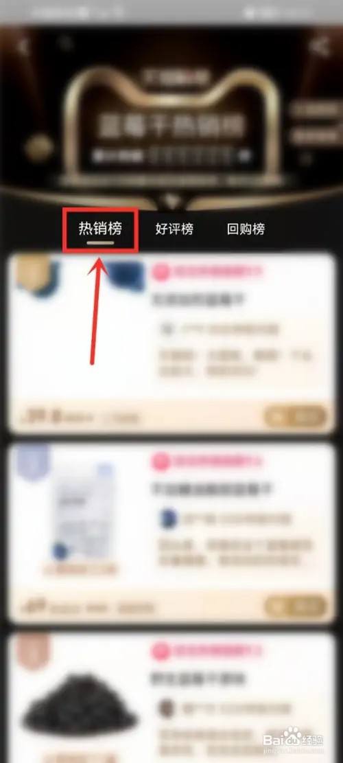 选择榜单,即可查看商品排行榜。