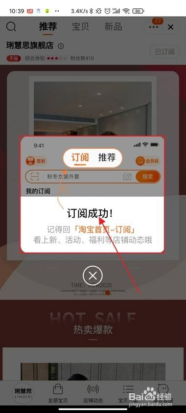 此时会弹出【订阅乐成】通知,则暗示已乐成存眷店肆。
