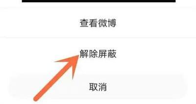 在屏蔽设置页面里点击“微博”选项切换进入。