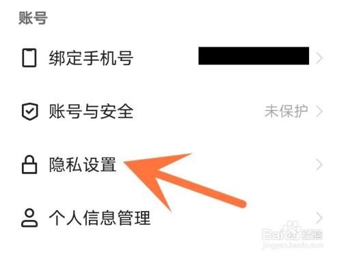 3、打开隐私设置。