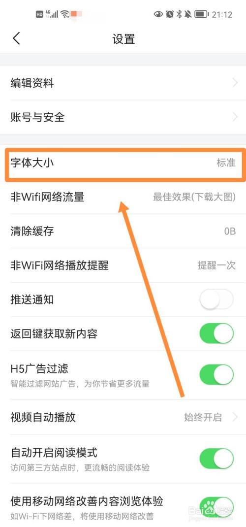 进入【字体巨细】界面,拖动最下面的滑块,调解字体至合适巨细,
