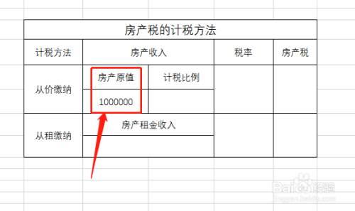 我们先来计较从价缴纳方式的房产税,先填写我们衡宇的原值,这里以虚拟数字举行举例