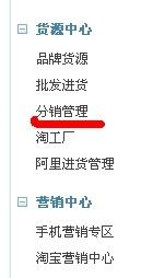 进入卖家中间后,在最左边的菜单栏,找到货源中间中的分销办理,点击进入。