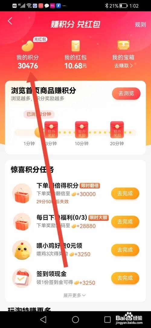 来到赚积分兑红包界面,然后点击【我的积分】。