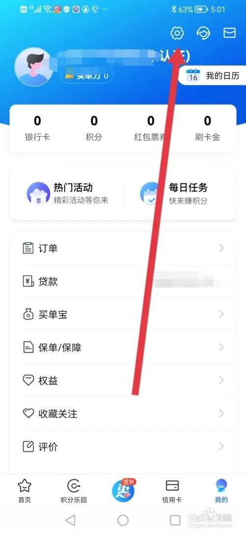 来到个人主页,点击顶部的设置图标。