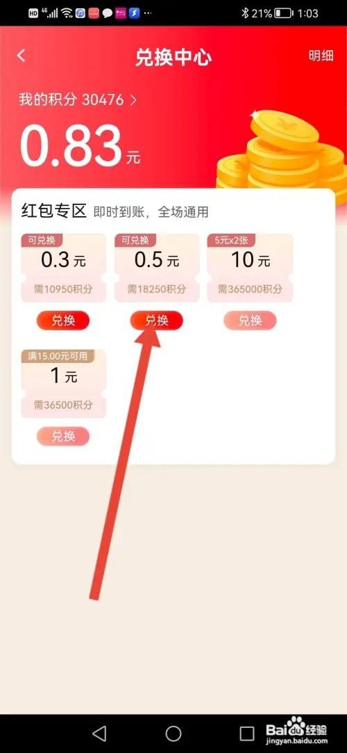 进入兑换中间,点击兑换。