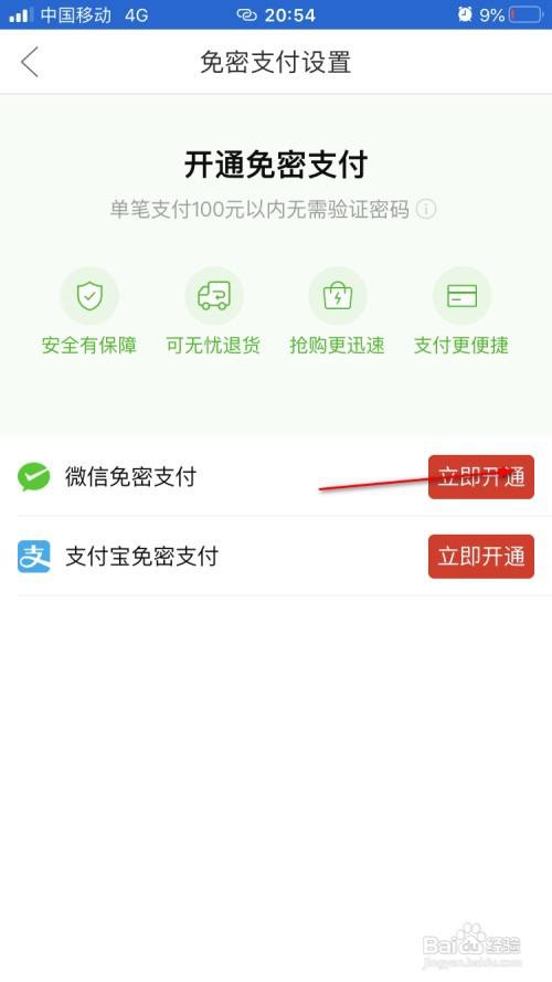 然后,在微信免密支付里,点击下【当即开通】按钮。
