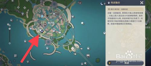然后打开世界舆图,点击图中箭头所指标的目的的锚点,传送至锚点处。