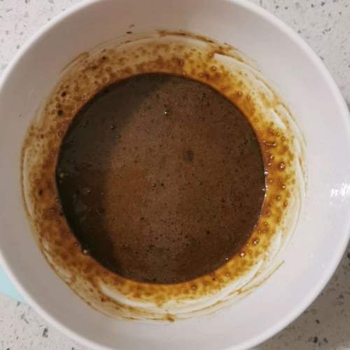 - 1蛋黄卵白分散,预热烤箱180度蛋黄中插手黑咖啡粉和水