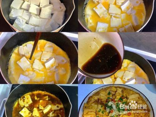 豆腐抱蛋做法: 1.豆腐切小块,鸡蛋打散备用 2.葱蒜小米椒切碎 二勺生抽、一勺蚝油、一勺豆瓣酱、三勺净水伴匀凉油下豆腐,倒入鸡蛋液中小火煮至鸡蛋凝集,然后插手酱汁煮开即可出锅,最后撒上葱花蒜末小米椒这个菜很下饭哦。