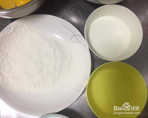 筹办好所有的原质料,低粉过筛,将鸡蛋的蛋黄和卵白分隔。烤盘铺好油纸。