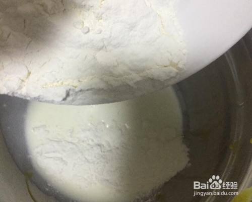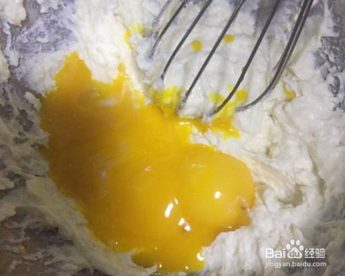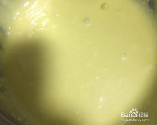 插手低粉,用蛋抽一字法搅拌至无干粉状况