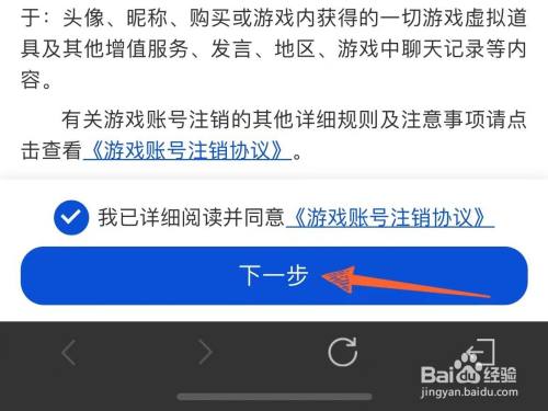 勾选赞成《游戏账号刊出和谈》并点击【下一步】。