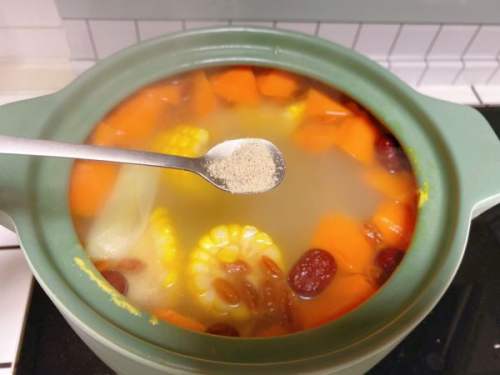 - 4按照个人口胃加1-2勺盐,继续盖盖炖煮半小时。
