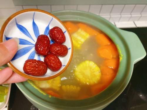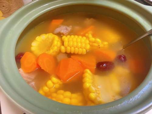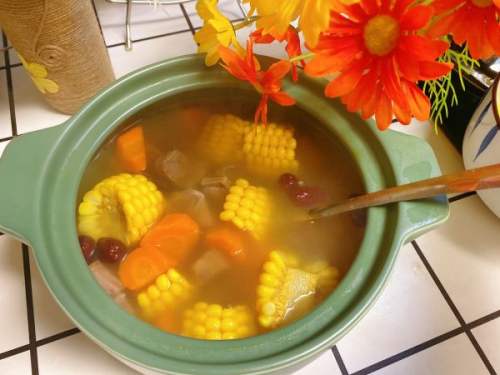 - 9胡萝卜和玉米甜甜的,肉质软烂,适合春夏的一道滋补汤。快来尝尝吧!