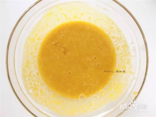 依次插手玉米油、牛奶、南瓜泥,搅拌匀称。