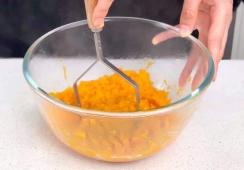 - 3南瓜去皮切块放入鹅妈妈钛晶锅中蒸熟后压当作南瓜泥(南瓜可养胃通便);