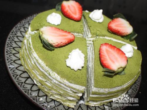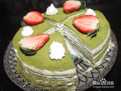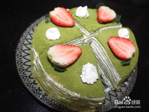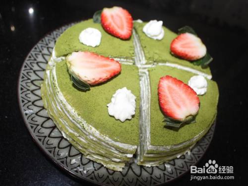 冷藏之后用过滤筛筛上适量抹茶粉,然后加上装饰就完当作啦