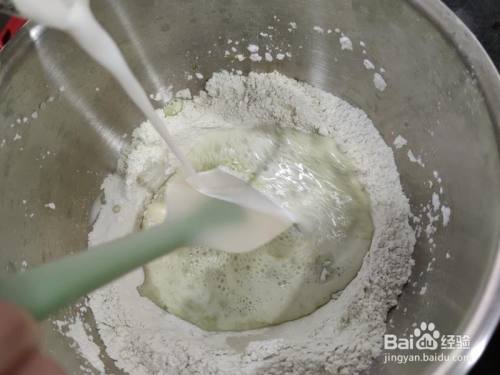 过筛后搅拌匀称,然后迟缓插手牛奶边轻轻搅拌,有疙瘩的话可以捞到碗边按开,后续过滤之后不影响