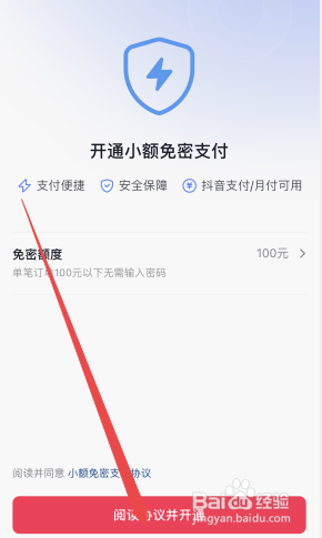 点击“阅读和谈并开通”后按提醒开通小额免密支付功效即可。