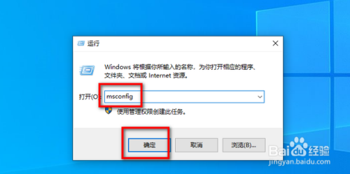 首先按住键盘win+R键打开运行窗口,输入msconfig,点击确定。
