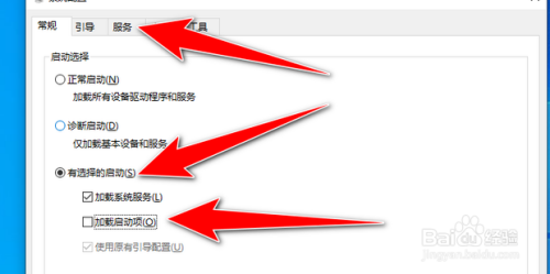 然后选择有选择的启动,取消勾选加载启动项,点击办事。