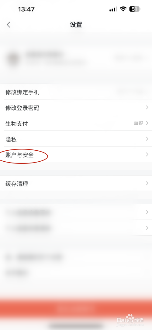 进入设置的页面点击【账户与安全】选项;