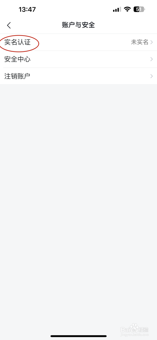 进入账户与安全的页面点击【实名认证】选项;