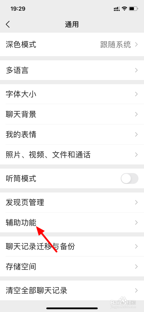 在通用界面,点击辅助功效。