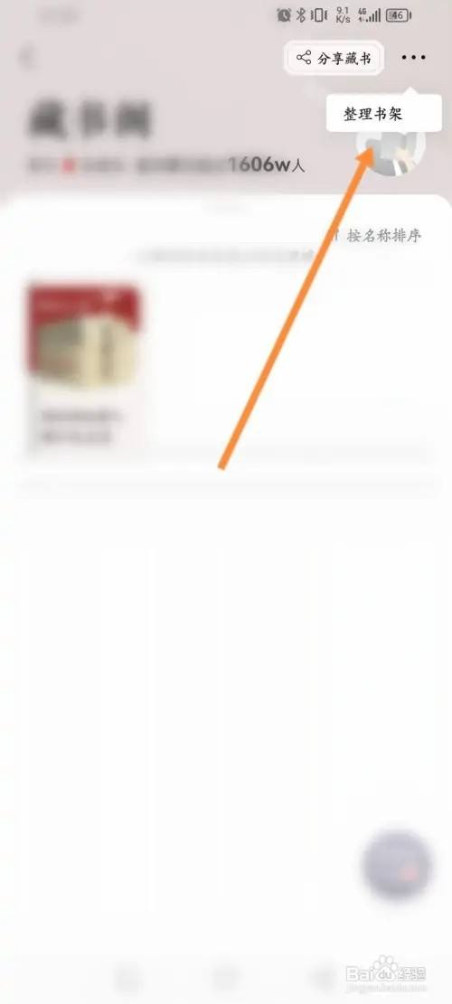 第四步,在弹出的菜单中点击整理书架