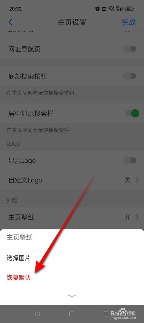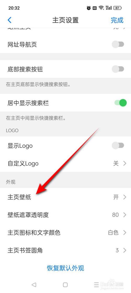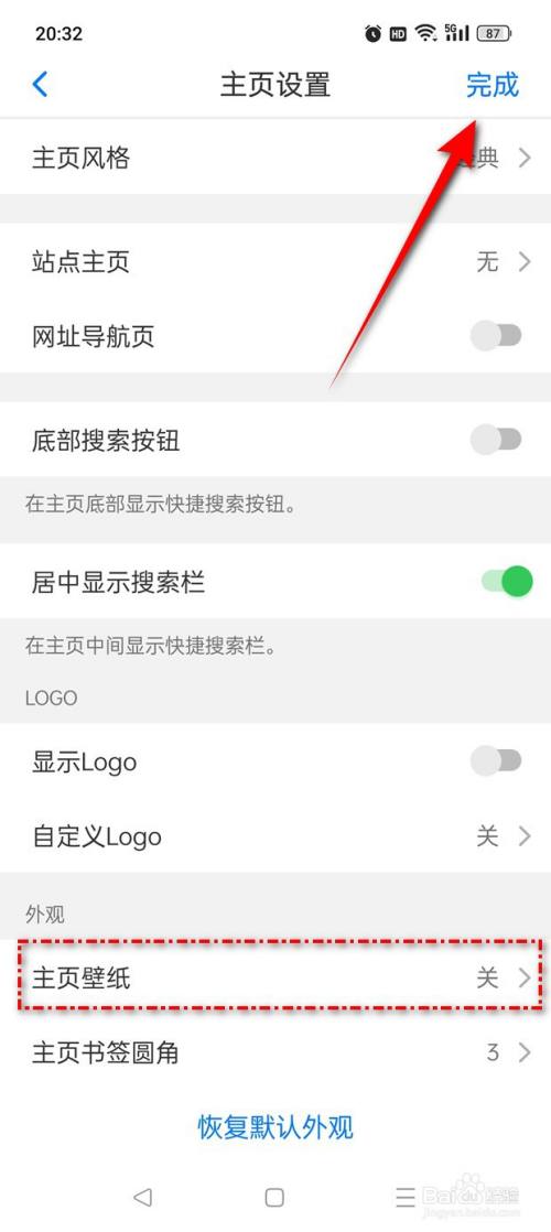 将“主页壁纸”设置为“关”后,点击“完当作”即可。