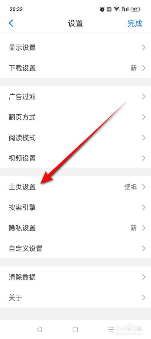 点击“主页设置”。