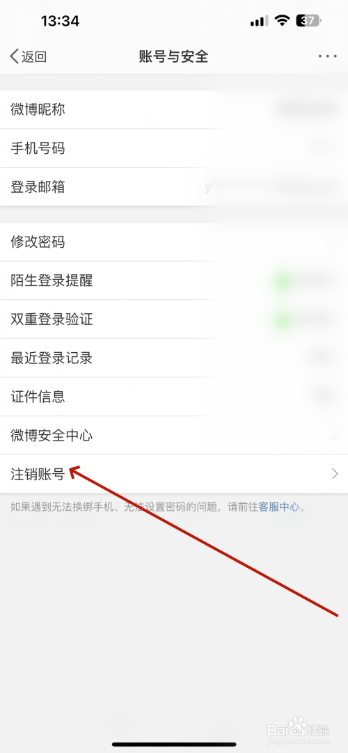 打开账号与安全的界面点击“刊出账号”选项,
