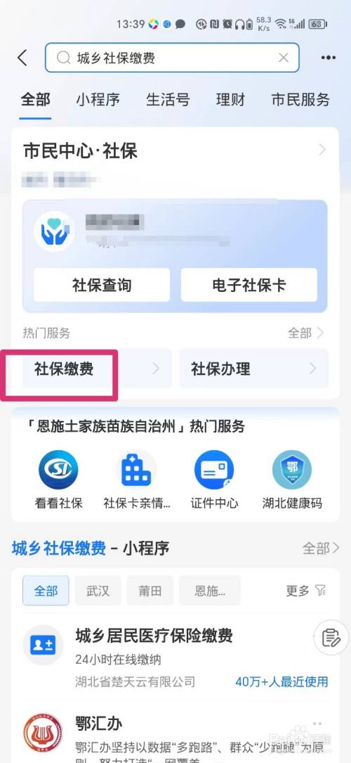 首先打开支付宝,搜刮【城乡社保缴用度】