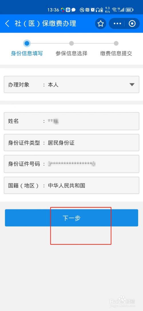 接下来输入要缴用度职员的身份证号码和姓名,点击确定