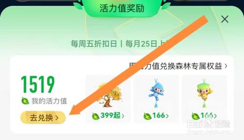 页面跳转后,点击“我的活力值”下方的【去兑换】,如图所示。