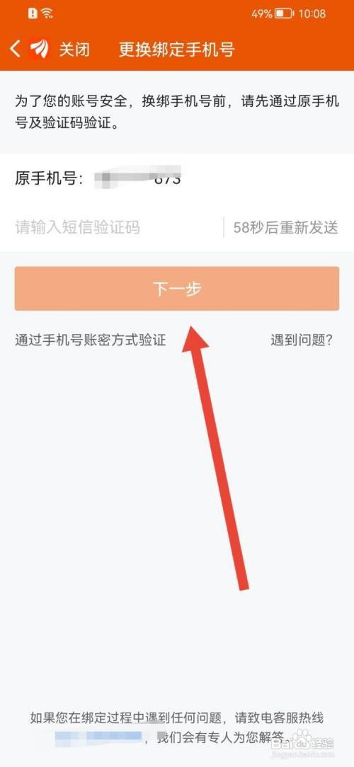 进入绑定手机号窗口,点击【改换手机号】,输入短信验证码,点击【下一步】。