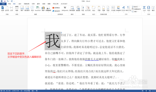 先设置好一个字首字下沉,双击设置好的下沉字,文字当选中进入编纂状况,将要设置下沉的其他字输入到框中。