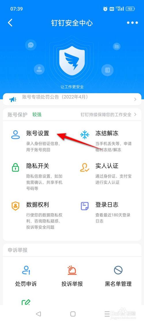 打开钉钉“我的”页面,点击“设置与隐私”。
