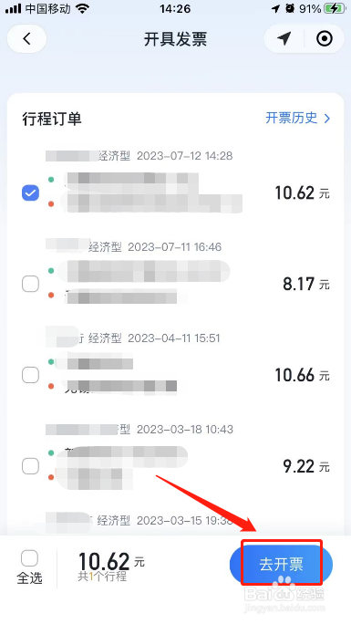 进入去开票,选择昂首类型、输入发票昂首、输入税号、发票金额、收件人姓名、手机号码、邮箱地址,点击【提交电子发票】。