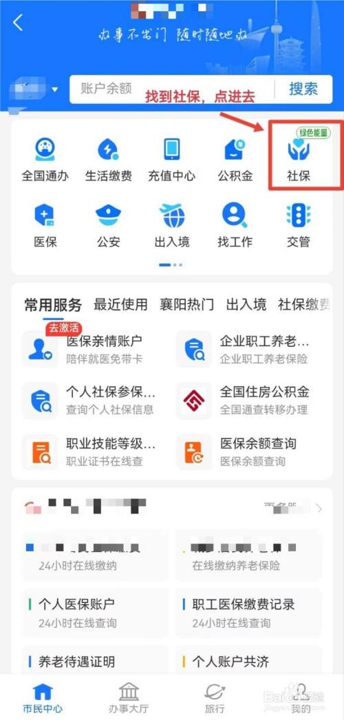 点击市民中间后,我们就可以看到下面这张图片,如图:找到社保这个位置