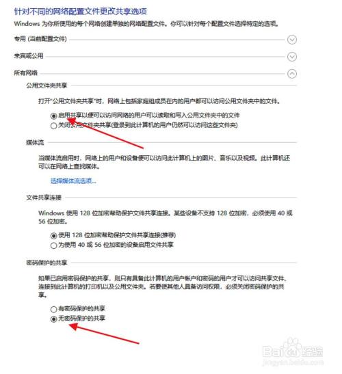 - 注重要设置无密码掩护的共享