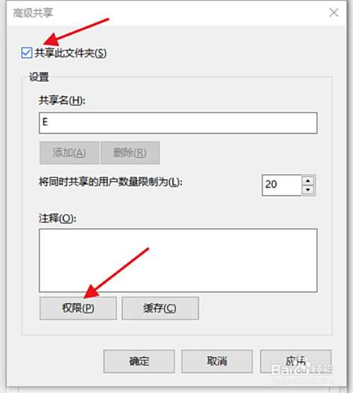 共享此文件夹打上对勾,然后点击权限