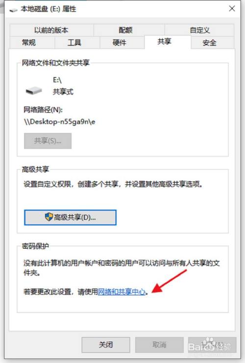首先打开此电脑右键单击磁盘E点击属性选择共享,点击高级共享