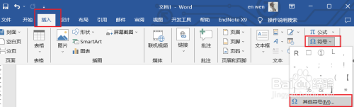 ①点击菜单【插入】-【符号】-【其他符号】。